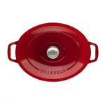 Stunning looks and durability are combined in this cast iron oval enamel casserole dish. It’s ideal for slow cooking and benefits from the superior heat distribution of cast iron. Beautiful and efficient at retaining heat, every Chasseur casserole is made in France from high quality cast iron and comes with a lifetime guarantee. This large, oval Casserole holds 4.5 litres, enough for 6 to 8 servings.