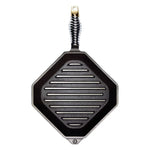 The 10 inch / 25cm Grill Pan (Grillet) is cast iron and designed to grill or sear your favourite meats and vegetables. Its compact skillet style shape makes it easy to store or hang.