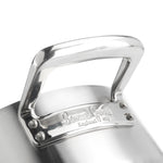 Two, hollow, riveted stainless-steel handles are large enough to provide you with a comfortable grip, even when wearing oven gloves, and the brushed stainless-steel lid will retain the heat and prevent evaporation.
